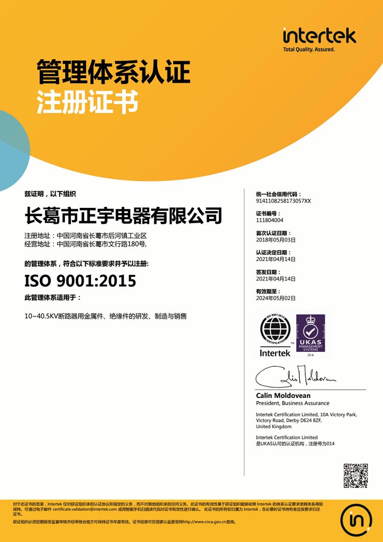 質(zhì)量管理體系認(rèn)證證書